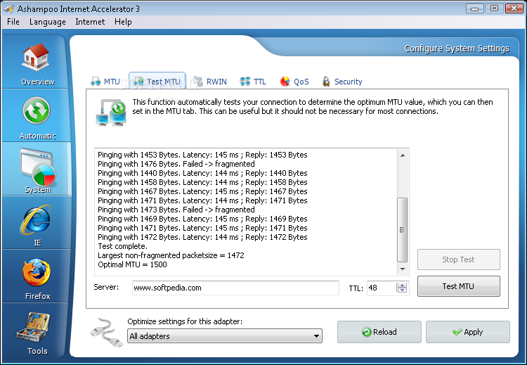 Ускоритель Ashampoo Internet Accelerator.